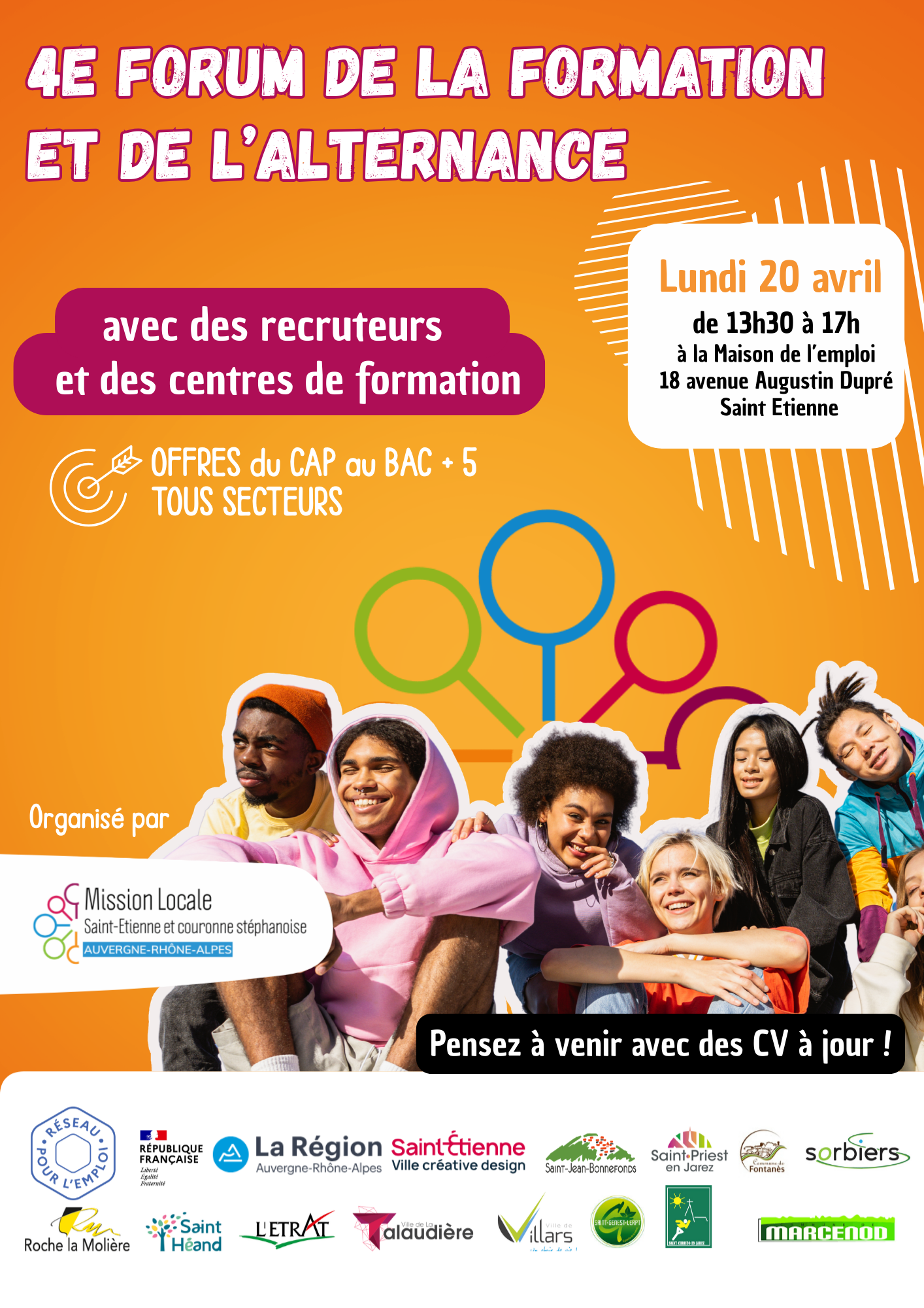 La Mission Locale organise son 4e Forum de la Formation et de l’Alternance, le lundi 20 avril 2026, de 13h30 à 17h à la Maison de l’Emploi de Saint-Étienne
