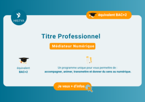 Avec Histya, formez-vous à ce métier d’avenir à travers un parcours complet (CCP1 + CCP2) qui vous permettra de développer toutes les compétences nécessaires : accompagner, animer, concevoir et piloter des projets d’inclusion numérique à fort impact social et local. 🌍